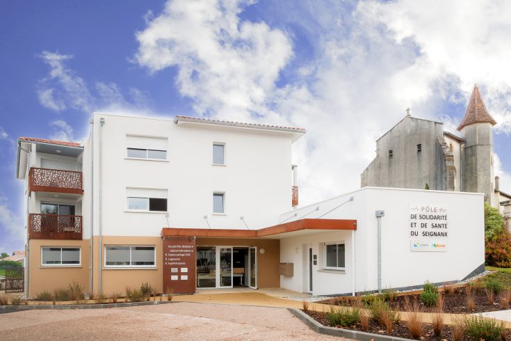 Le bâtiment se compose de 3 niveaux ; au rez-de-chaussée prennent place un pôle médical de 225 m2, administré par la Communauté de communes du Seignanx, et une salle d’activités de 65 m2, gérée par le Centre intercommunal d’action sociale (CIAS). Au 1er et 2ème étage, se trouvent 8 logements collectifs (6 T2 et 2 T3), à destination des personnes âgées.